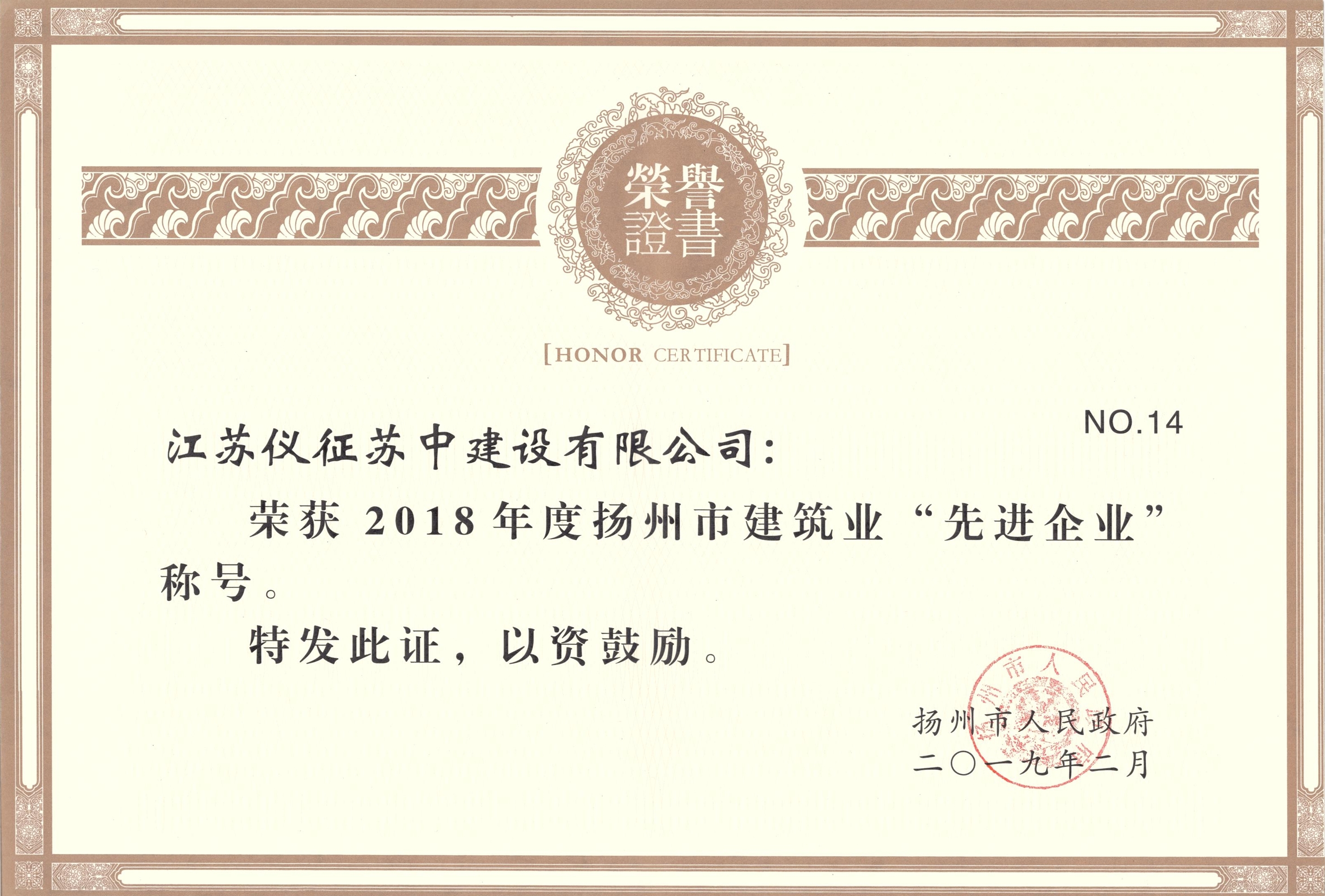 2018年度揚(yáng)州市建筑業(yè)“先…