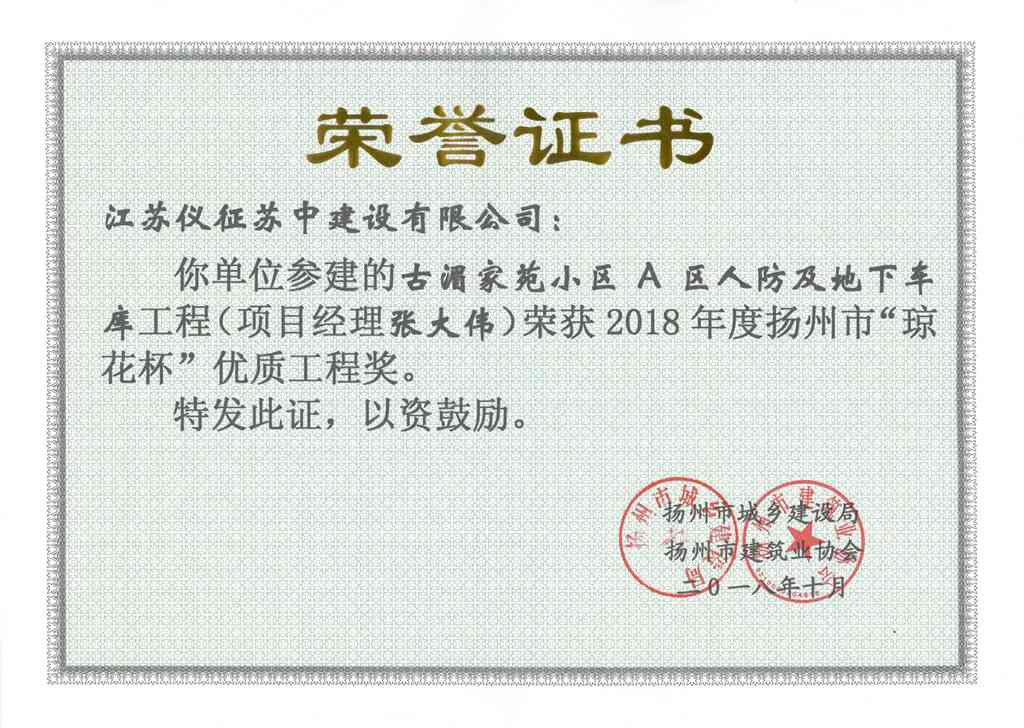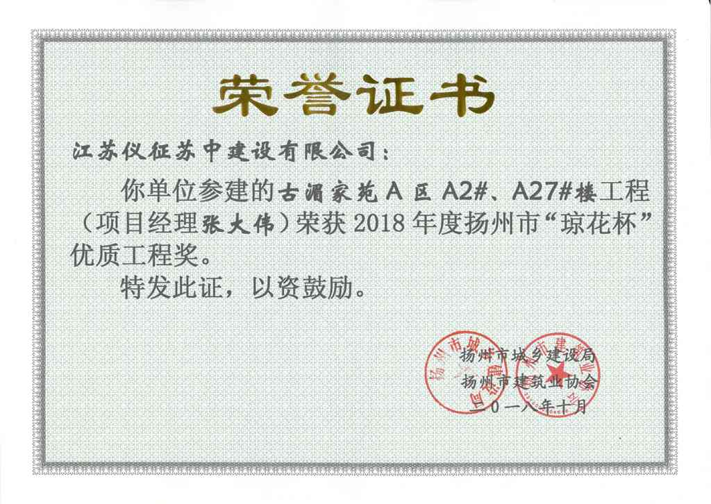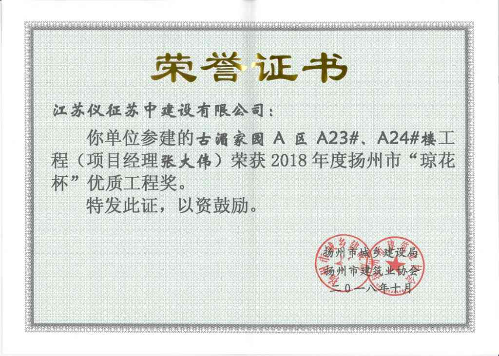 2018年度揚州市瓊花杯優(yōu)質(zhì)…