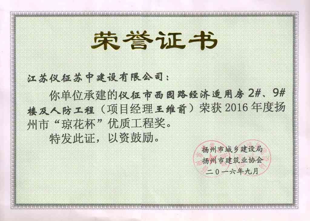 揚(yáng)州市優(yōu)質(zhì)結(jié)構(gòu)工程