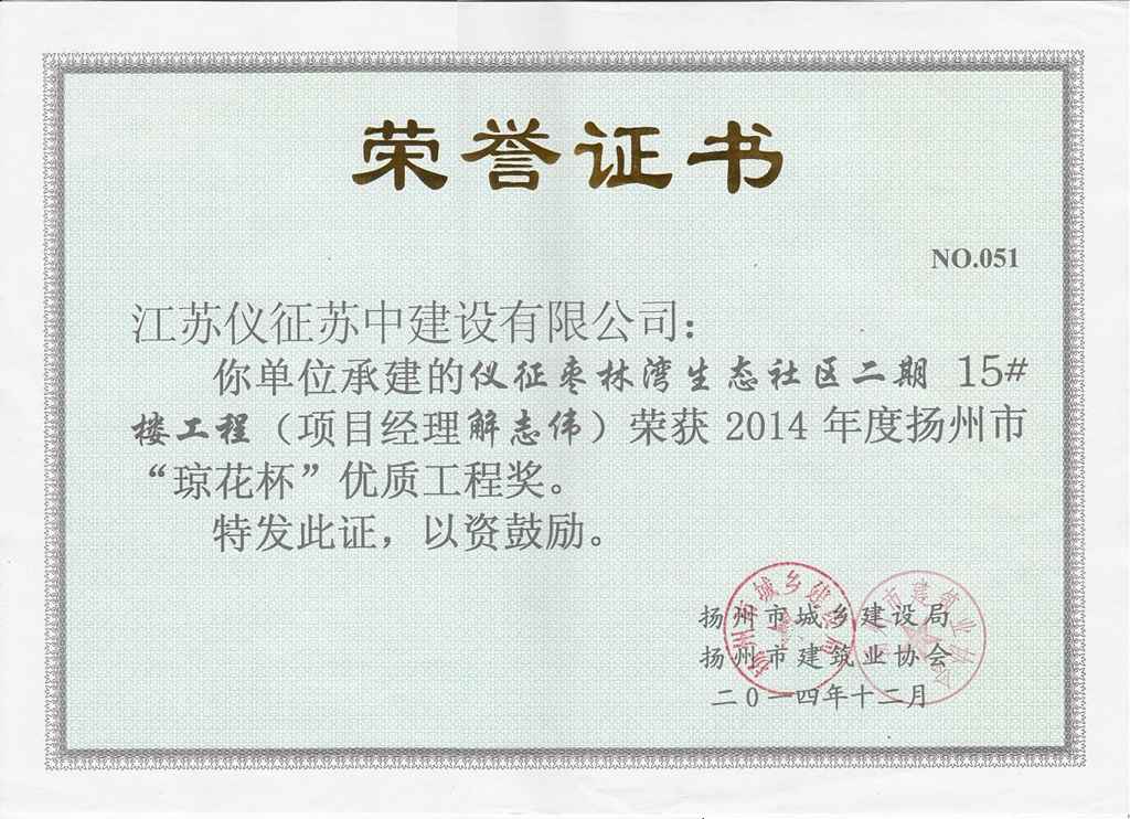 2014年度揚州市瓊花杯優(yōu)質(zhì)…