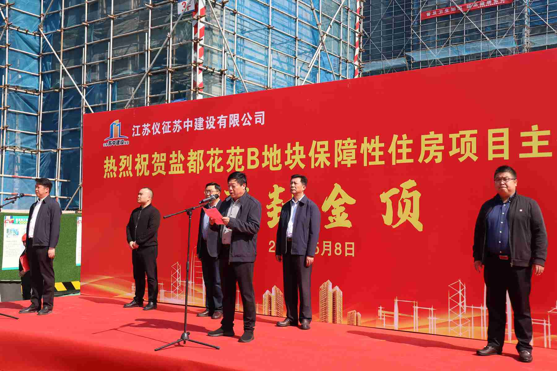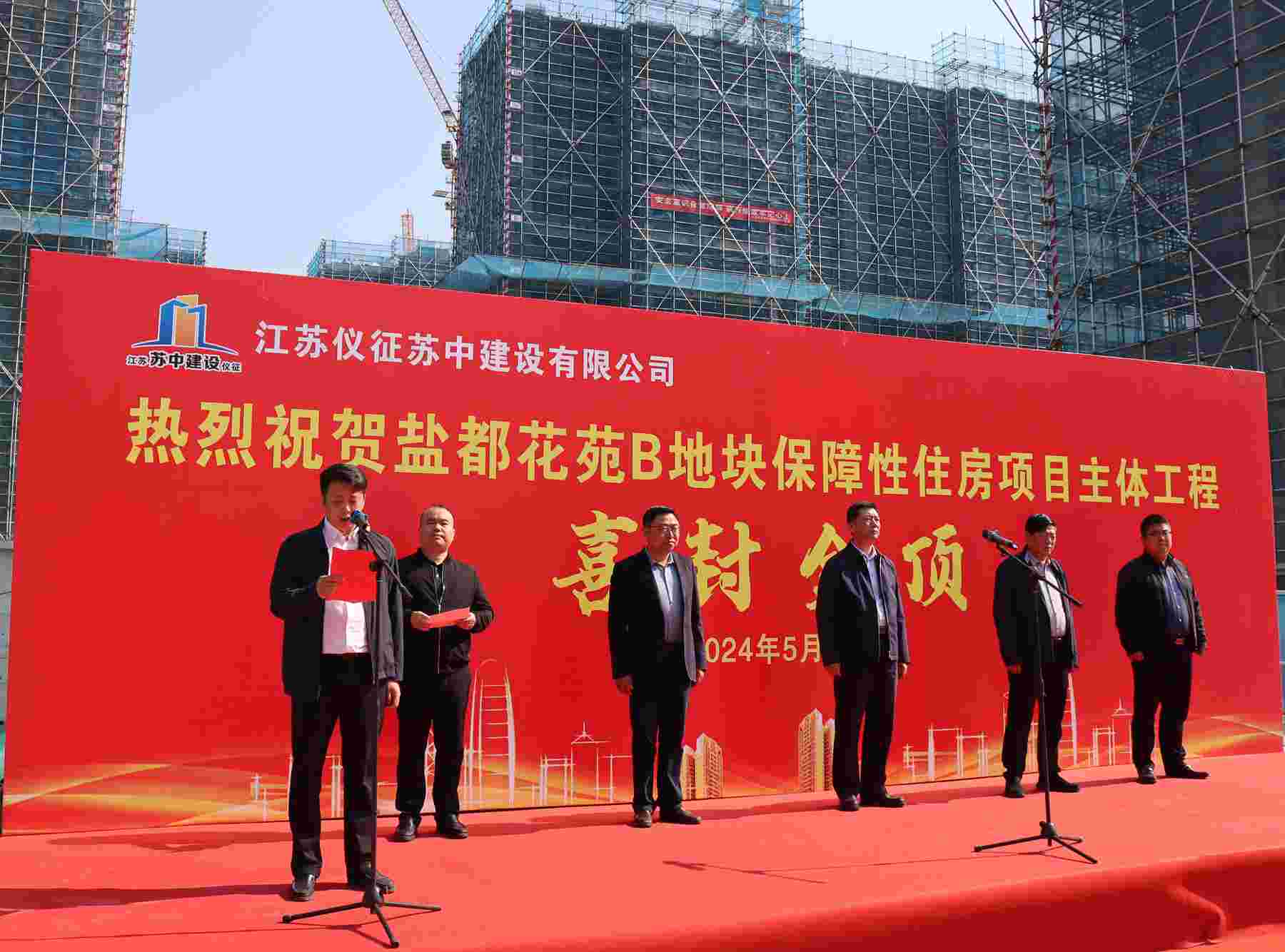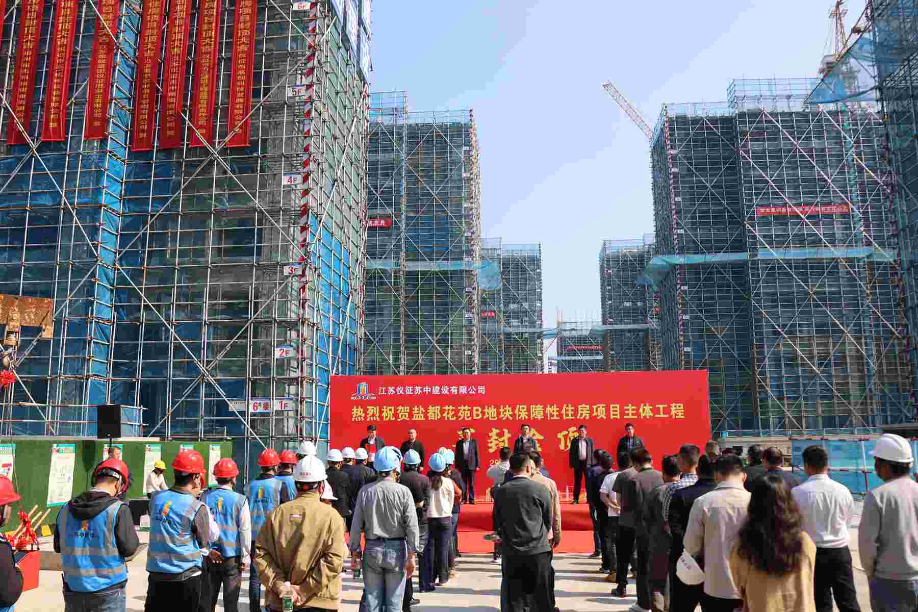 今天上午,在公司承建的鹽都花苑B地塊保障性住房項目現場舉行了隆重的主體工程封頂儀式。