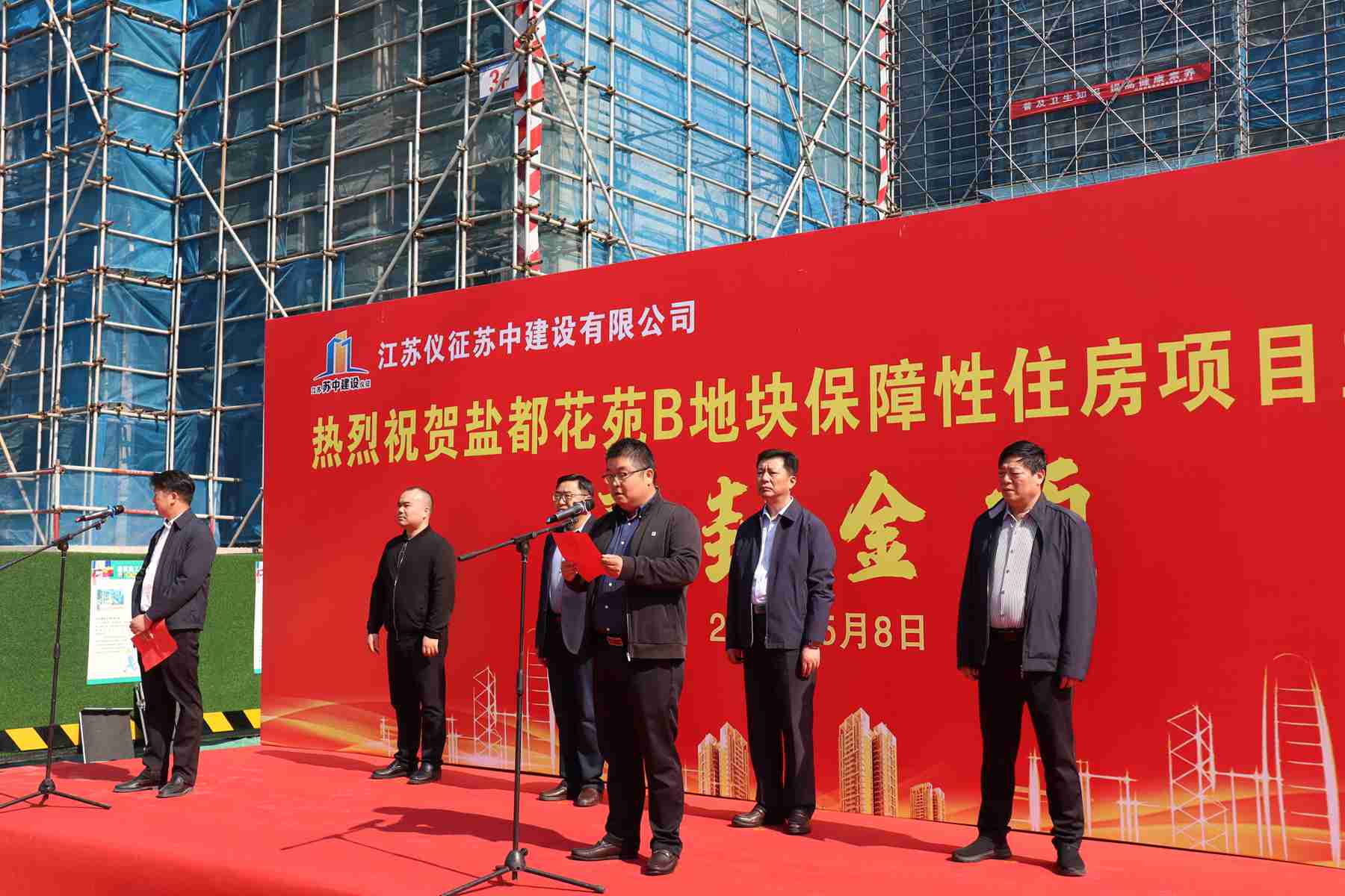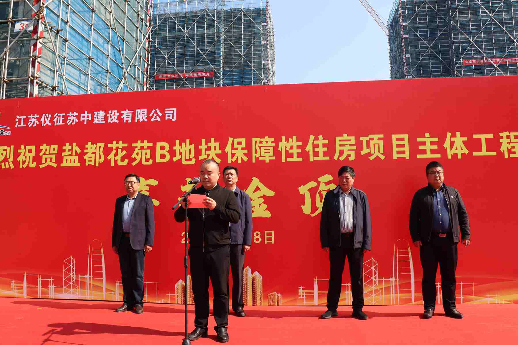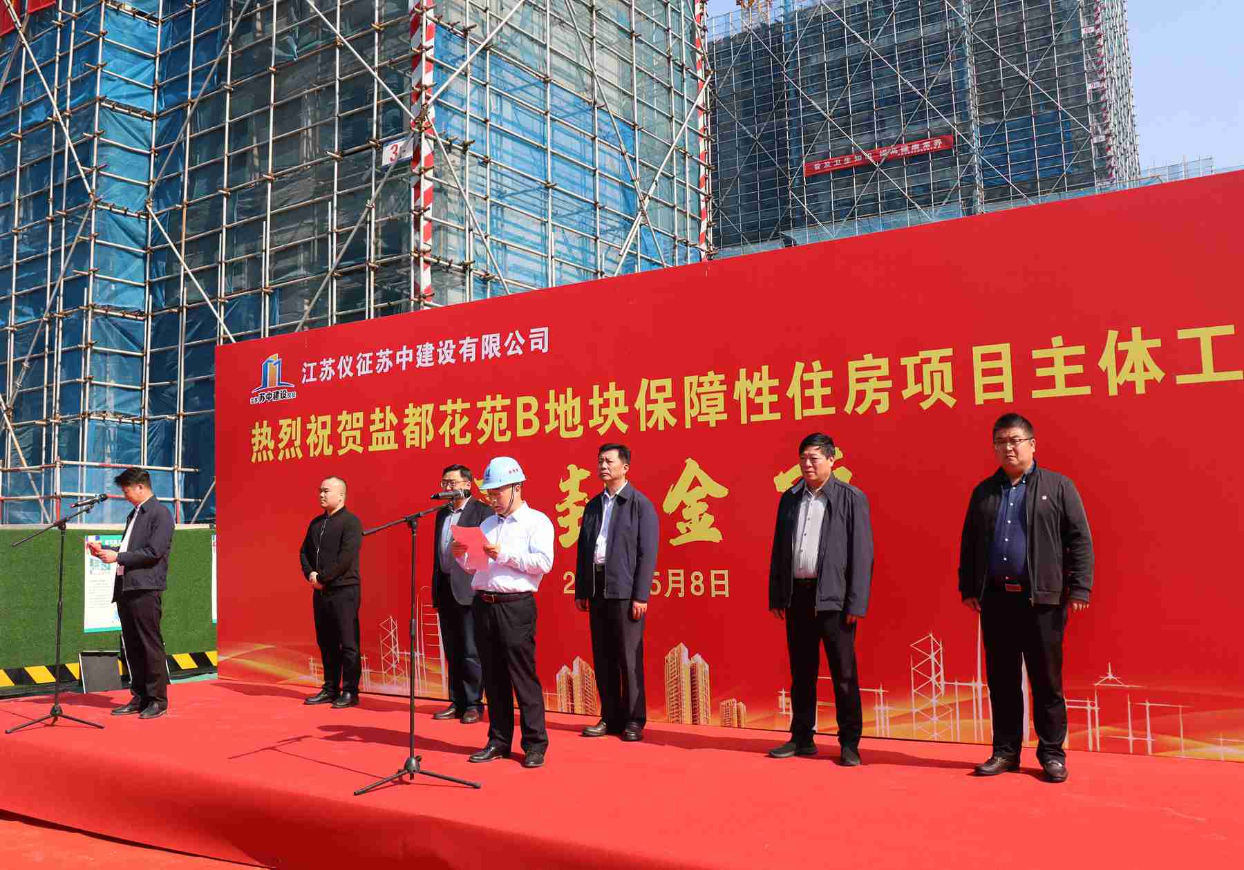 今天上午,在公司承建的鹽都花苑B地塊保障性住房項目現場舉行了隆重的主體工程封頂儀式。