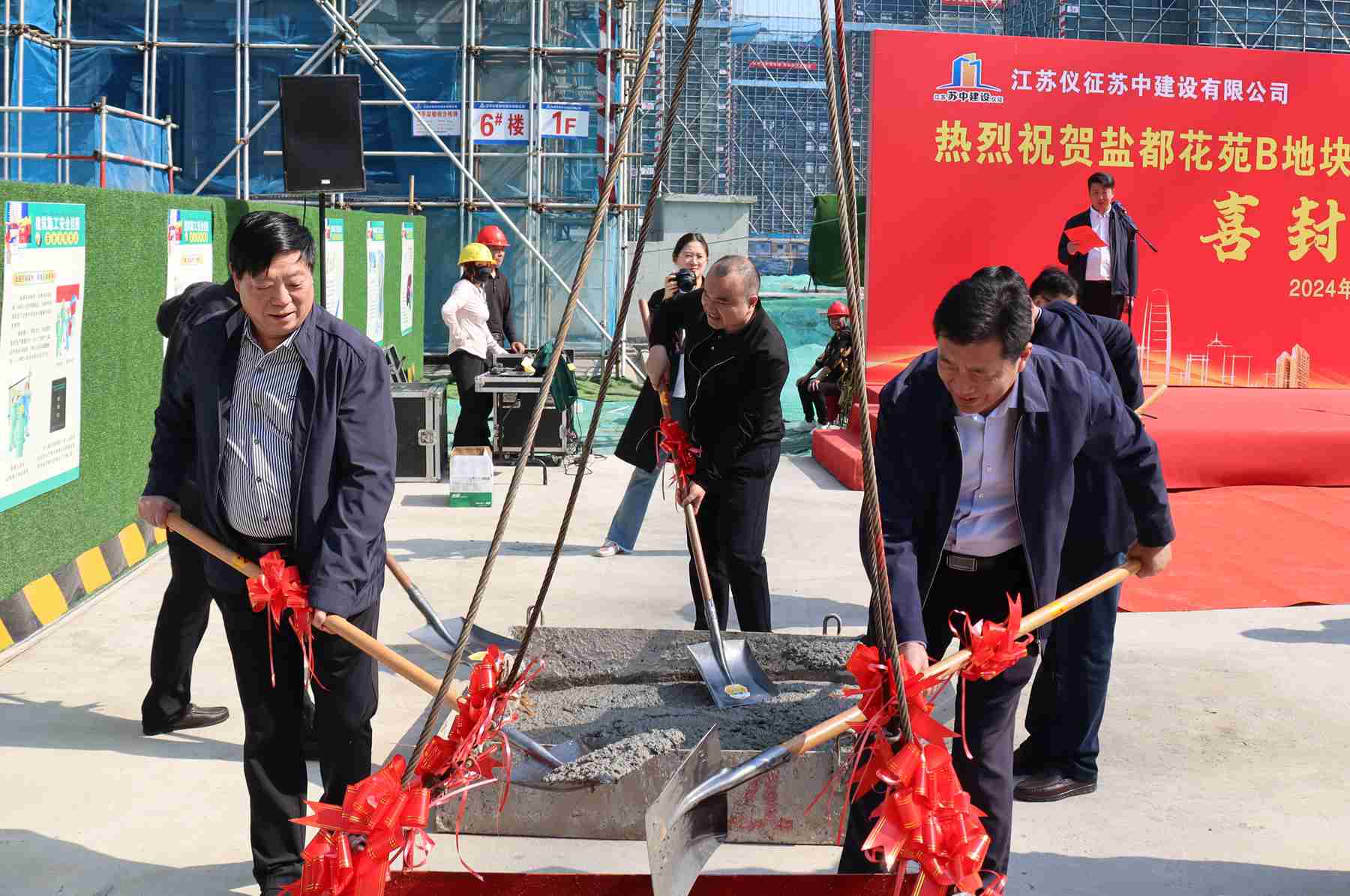 伴隨著喜慶的樂曲,在全員見證下,出席的嘉賓們一同為項目封頂澆筑最后一方混凝土,承載滿滿祝福與期望。至此,本次封頂儀式圓滿禮成。