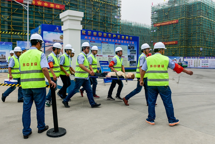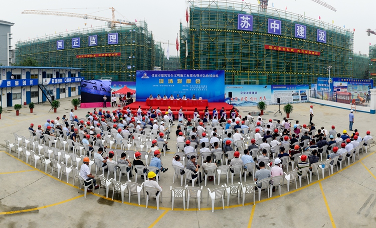 為認(rèn)真貫徹落實國家、省、市近期關(guān)于安全生產(chǎn)“一必須五到位”工作部署,深入推進(jìn)建筑施工安全生產(chǎn)標(biāo)準(zhǔn)化建設(shè),切實提高建筑施工從業(yè)人員防災(zāi)、避災(zāi)和自救、互救能力,根據(jù)安全生產(chǎn)月活動安排,由市城建局主辦,市安監(jiān)站、蘇中公司承辦,市公安消防大隊協(xié)辦的儀征市城建系統(tǒng)建筑安全文明施工標(biāo)準(zhǔn)化暨應(yīng)急救援演練現(xiàn)場觀摩會于2017年6月30日在沙河安置小區(qū)召開。