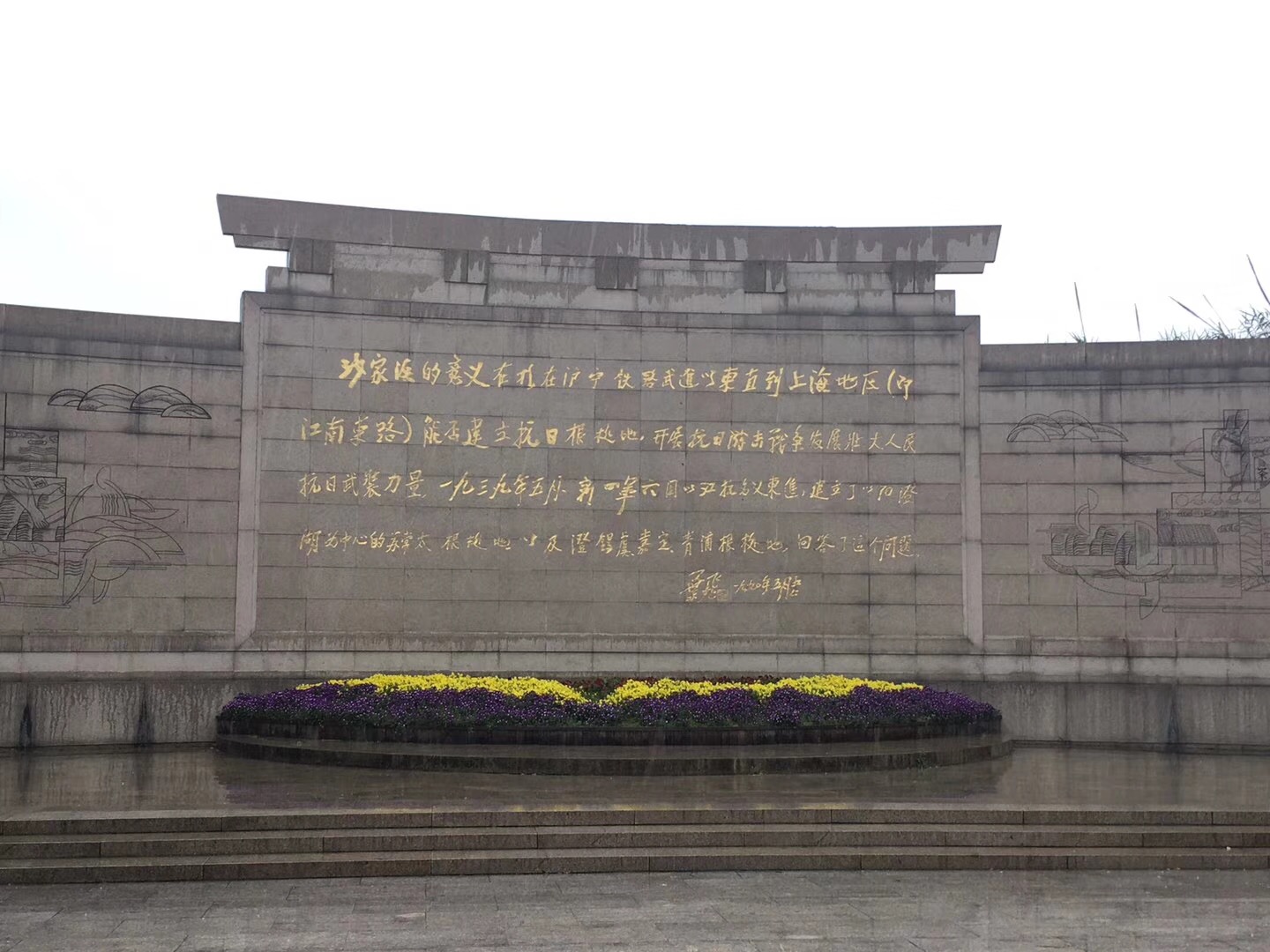 一進沙家浜景區(qū),首先映入眼簾的就是瞻仰廣場,以“郭建光”、“阿慶嫂”等形象為主創(chuàng)作的大型主雕屹立于廣場中央,生動地揭示了軍民魚水情深的主題。象征新四軍傷病員的18根柱雕以形態(tài)各異的塊面造型和強烈的肌理效果對比,淋漓盡致地表現出新四軍傷病員泰山壓頂不彎腰的革命精神。兩組鍛銅浮雕以細膩、生動的構圖和豐滿的人物形象,演繹深化魚水情深主題。