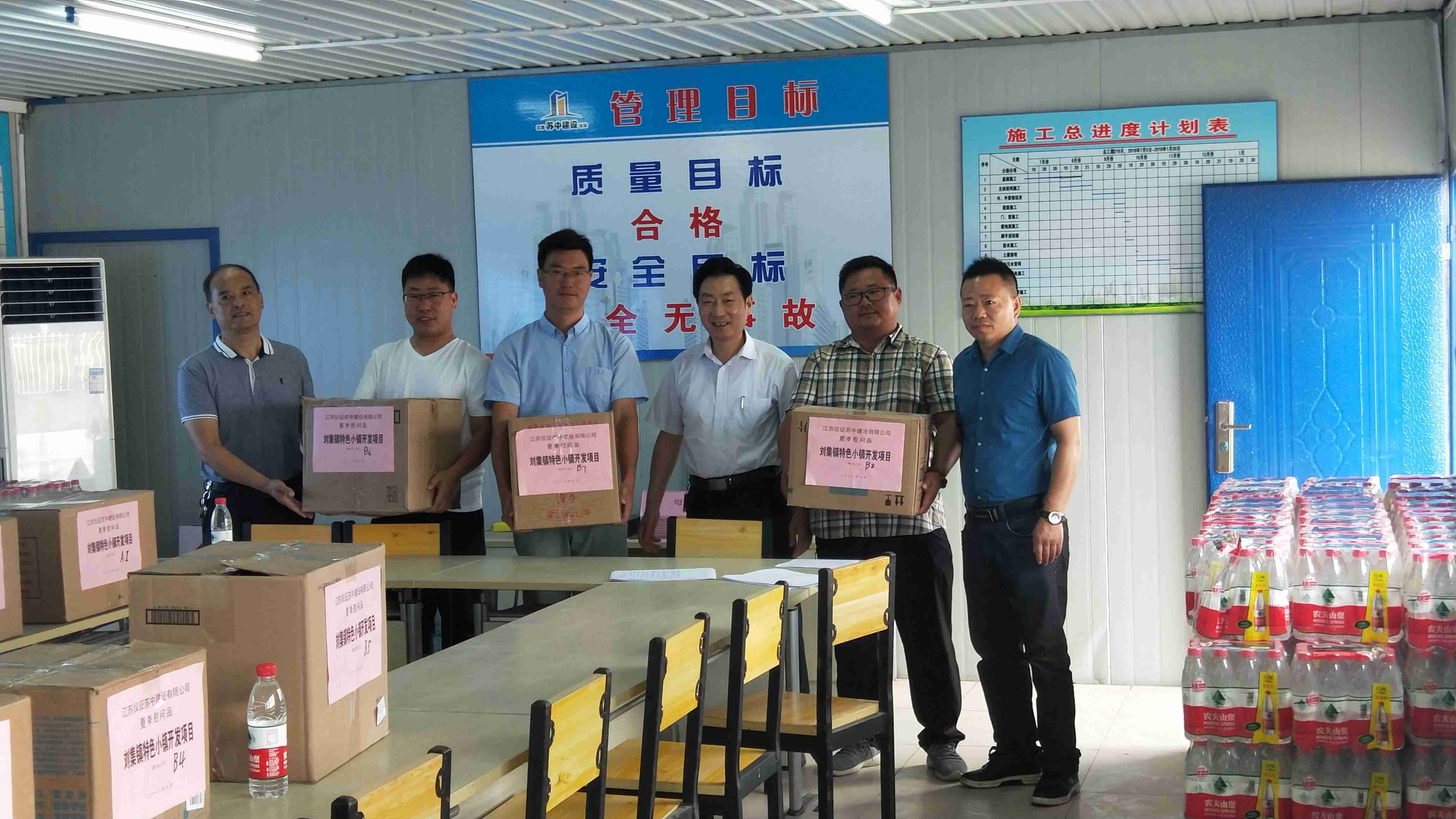 一線員工的防暑降溫和身體健康始終牽動(dòng)著公司領(lǐng)導(dǎo)的心,7月27日公司工會(huì)和質(zhì)安部相關(guān)領(lǐng)導(dǎo)帶著慰問(wèn)物品前往基層項(xiàng)目部進(jìn)行慰問(wèn),公司領(lǐng)導(dǎo)叮囑大家要切實(shí)做好夏季防暑降溫和安全生產(chǎn)管理工作,要合理調(diào)整作息時(shí)間,抓兩頭放中間,避免高溫時(shí)段施工作業(yè),避免員工疲勞中暑,確保夏季安全生產(chǎn)無(wú)事故。