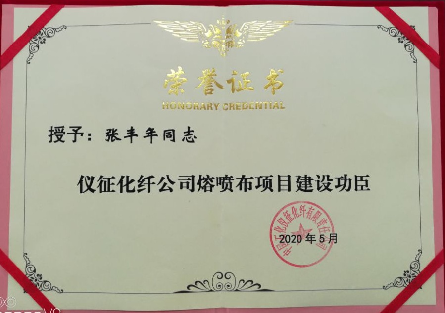 一夜成軍,熔噴布項(xiàng)目創(chuàng)儀化項(xiàng)目建設(shè)史最短工期記錄。為表彰我公司在熔噴布項(xiàng)目建設(shè)中的突出表現(xiàn),中國(guó)石化儀征化纖有限責(zé)任公司于2020年5月18日向我公司發(fā)來(lái)《感謝信》,同時(shí)向項(xiàng)目經(jīng)理張豐年同志頒發(fā)“熔噴布項(xiàng)目建設(shè)功臣”榮譽(yù)證書和獎(jiǎng)?wù)录蔼?jiǎng)金5000元整。