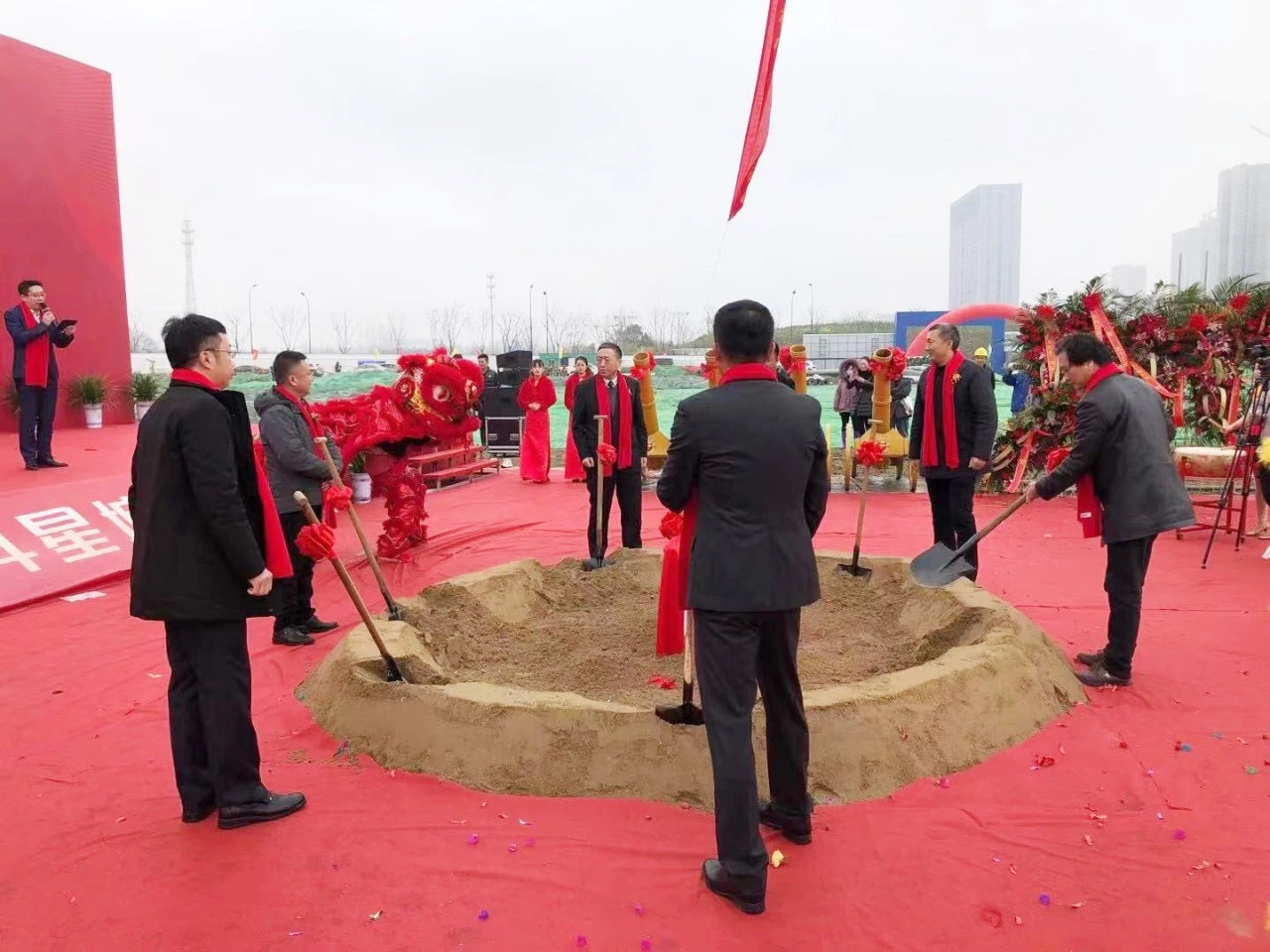 上午9點28分,北斗星城開工典禮在鑼鼓齊鳴、雄獅舞動中正式啟動。公司董事長金玉平代表項目總承包施工單位致辭,向北斗星城項目的開工建設表示熱烈祝賀,向所有關心和支持項目建設的各級領導和朋友表示最誠摯的感謝。金玉平董事長介紹了公司概況及獲得的主要榮譽;北斗星城項目,公司選派技術骨干組成項目團隊進駐現(xiàn)場,明確目標、強化責任、靠前指揮,有信心、有決心、有能力,在項目建設方的統(tǒng)籌指揮領導、各級主管部門的支持和監(jiān)督下,快速、有序、優(yōu)質、高效完成項目建設任務,確保實現(xiàn)工程“創(chuàng)優(yōu)創(chuàng)建”各項目標,公司明確要求將北斗星城項目打造成儀征住宅工程標桿性項目,以回報社會各界對公司一直以來的關心和支持。