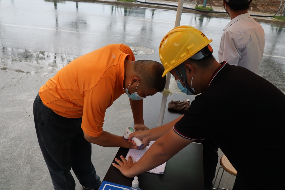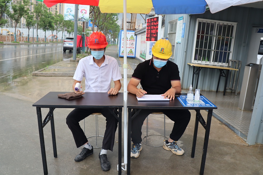 今天下午,儀征市住房和城鄉(xiāng)建設(shè)局局長竇成松、副局長趙勇帶隊(duì),冒雨檢查指導(dǎo)公司北斗星城項(xiàng)目的疫情防控工作,公司董事長金玉平陪同檢查。局領(lǐng)導(dǎo)指出,當(dāng)前防疫形勢異常嚴(yán)峻,項(xiàng)目部要扎實(shí)做好防疫工作,將各項(xiàng)防疫措施落到實(shí)處,確保疫情防控萬無一失。