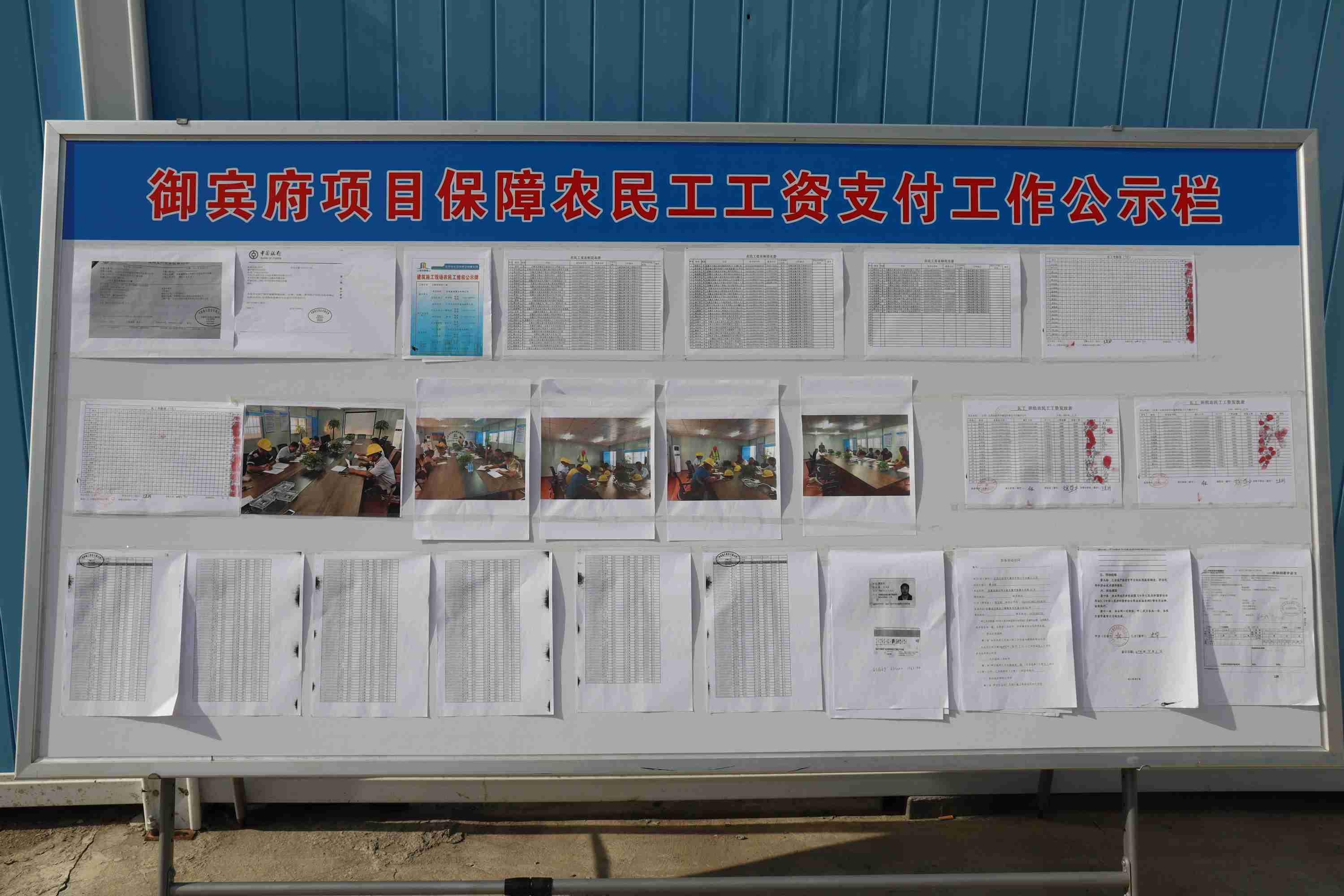 為迎接本次考核,項目部將匯報材料制作成PPT,詳細(xì)介紹了保障農(nóng)民工工資發(fā)放情況;提前準(zhǔn)備了詳實的內(nèi)頁資料,將月工資發(fā)放記錄、銀行流水、實名制考勤及勞動用工合同等內(nèi)容制作成宣傳展板,供專家組成員查看。