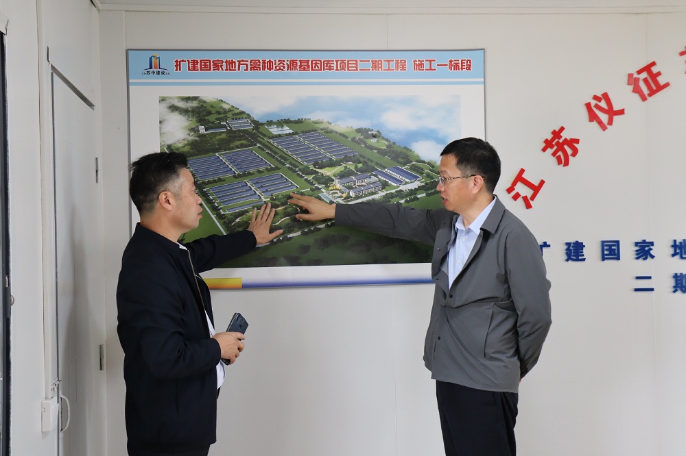 2021年10月13日下午,江蘇省農(nóng)業(yè)農(nóng)村廳副廳長(zhǎng)季輝一行蒞臨我公司承建的擴(kuò)建國(guó)家地方禽種資源基因庫(kù)工程建設(shè)現(xiàn)場(chǎng),實(shí)地調(diào)研項(xiàng)目建設(shè)推進(jìn)情況,江蘇省家禽科學(xué)研究所副所長(zhǎng)童海兵,公司副總經(jīng)理孫存友陪同視察。