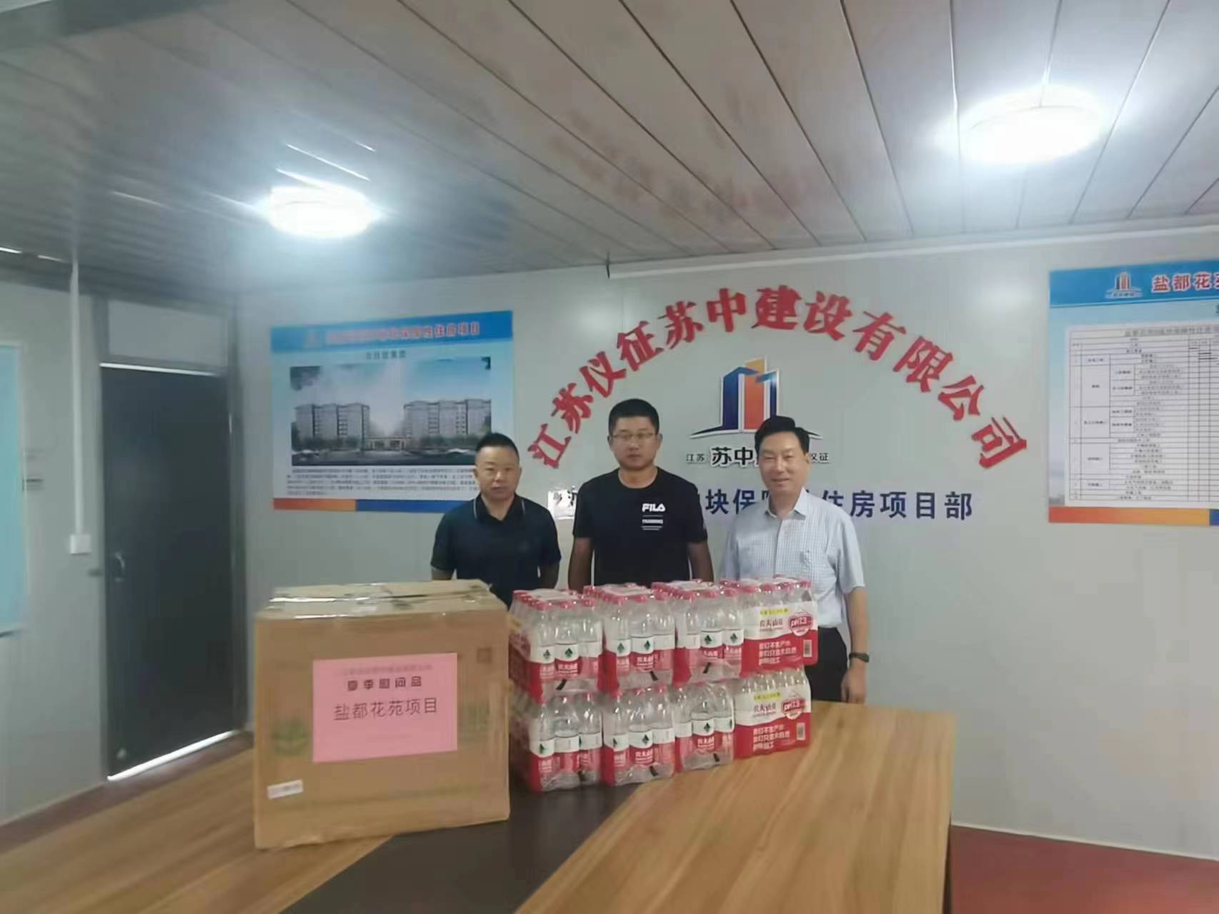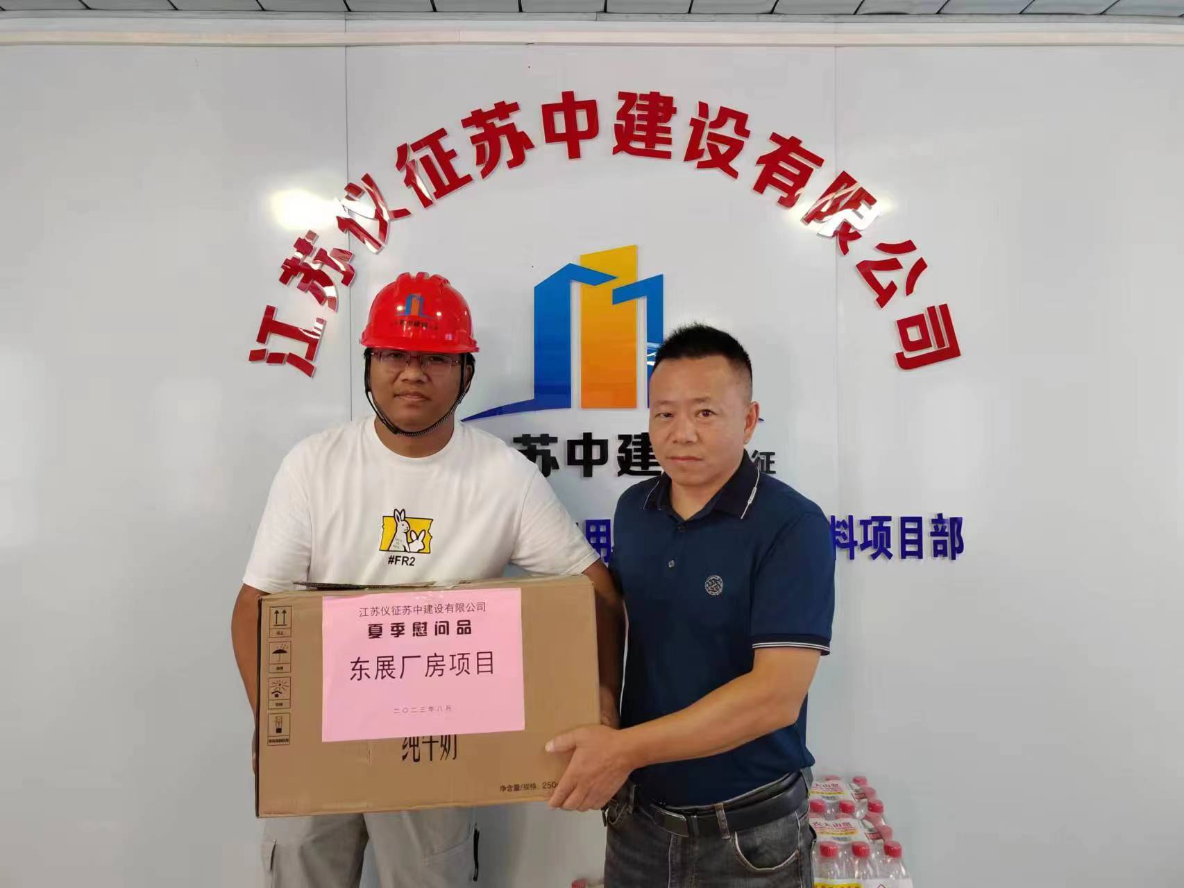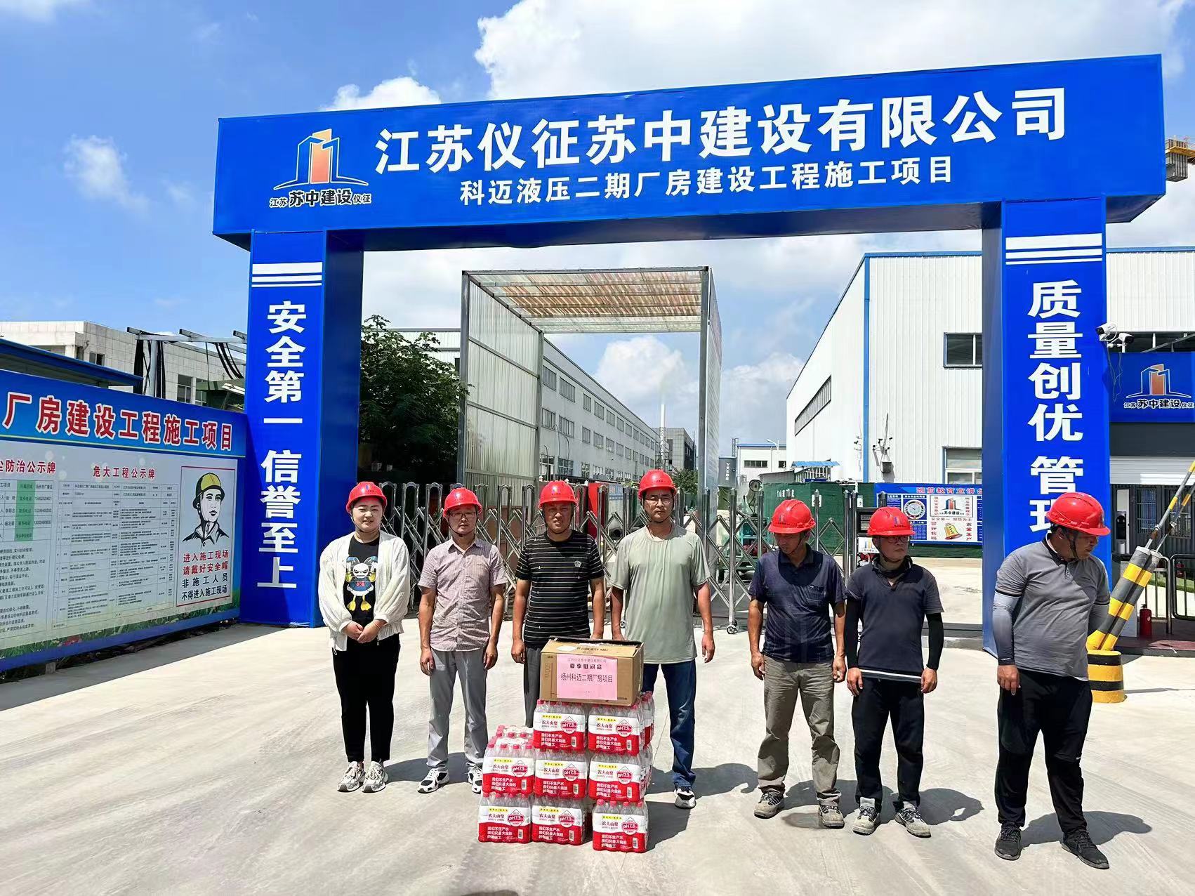 為切實保障施工一線職工的生命安全和身體健康,傳遞公司領(lǐng)導(dǎo)對職工的關(guān)心關(guān)愛,營造良好和諧的工作氛圍,公司黨支部、安全管理部于2023年8月4日聯(lián)合開展“夏季送清涼”慰問活動,先后慰問了鹽都花苑B地塊、紅旗花苑B區(qū)、揚州GZ313地塊等7個在建項目。
